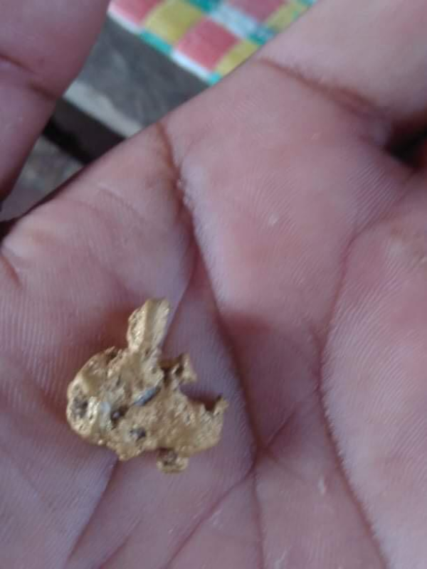 Figure 2 Nugget in the palm of Mike Weeks, recovered from panning material from CZ Gold tunnel in a small stream directly below CZ Gold Prospect